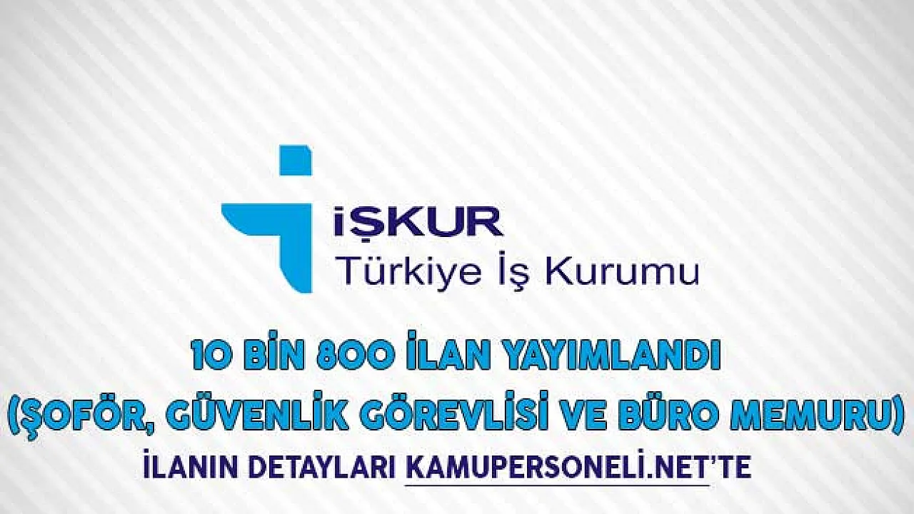 Türkiye genelinde çok sayıda devlet kurumu ve özel sektör firmaları tarafından yayımlanan ilanlarla beraber personel alımı yapılmaya devam ediyor.İŞKUR aracılığıyla yayımlanan ilanlarda ise Güvenlik görevlisi, şoför ve büro memuru alımı için 10 bin 800 i