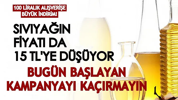- 100 liralık alışveriş yaparsanız büyük indirim uygulanacak! 1 lt sıvıyağ da 15 TL'ye düşüyor: Bugünden itibaren başlayan market kampanyasını kaçırmayın!