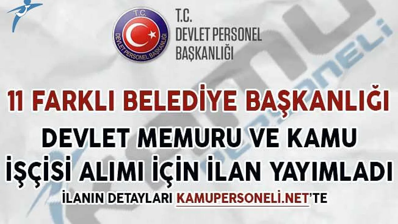 11 farklı belediye kamu personeli alım ilanı yayımladı. Yayımlanan ilanlar arasında çok sayıda pozisyonda alım yapılacağı ilan edildi.