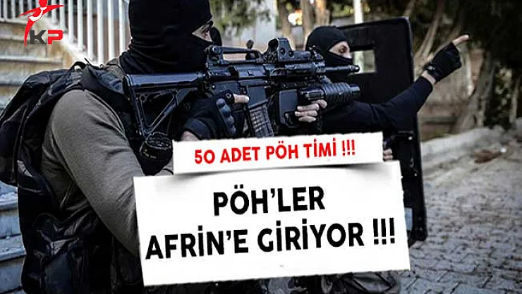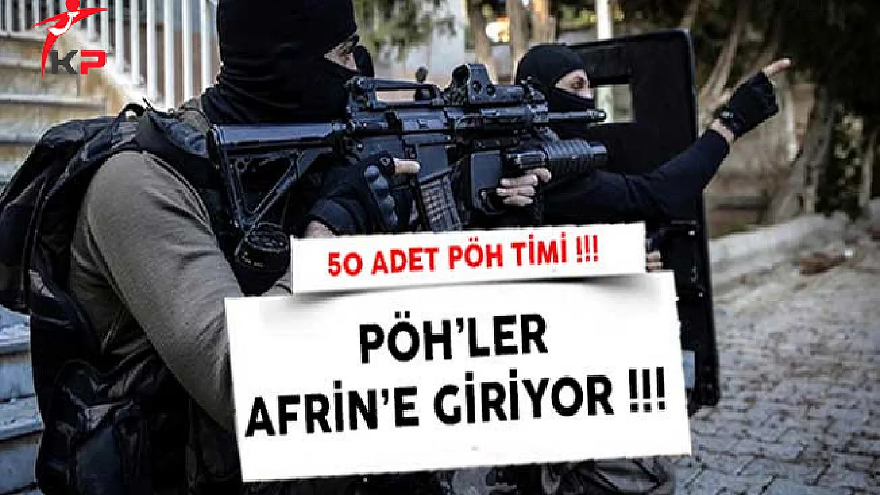 PÖH'LER BÖLGEYE GİRİYOR Polis Özel Harekat mensupları 50 tim halinde Afrin'e intikal edecek.Polis Özel Harekat timleri Afrin bölgesinde askerimize destek verecek.