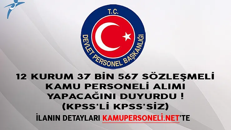 12 Kurum 37 Bin 567 Sözleşmeli Kamu Personeli Alımı Yapacağını Duyurdu! (KPSS'li KPSS'siz)