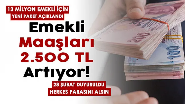 - 13 milyon emekli için yeni paket duyuruldu! 28 Şubat resmen duyuruldu: Emekli maaşları 2 bin 500 lira artıyor