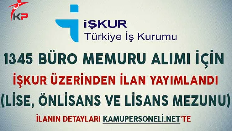 - 1345 Büro Memuru Alımı İçin İşkur Üzerinden İlan Yayımlandı (Lise, Önlisans ve Lisans Mezunu)