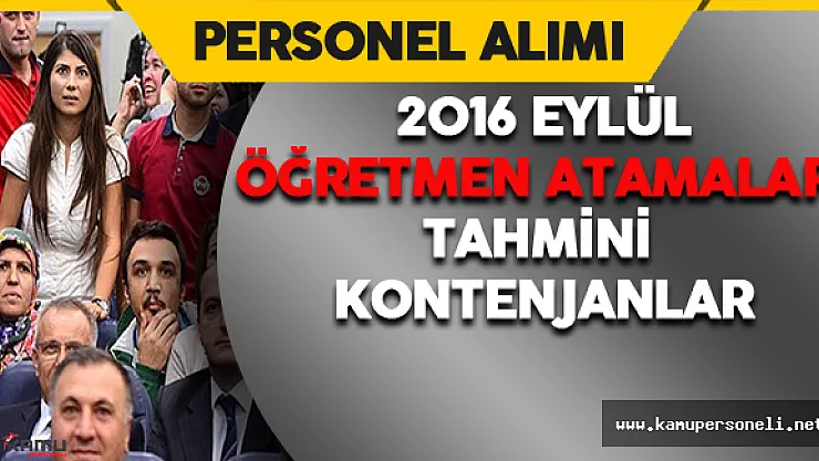 - 2016 Eylül Sözleşmeli Öğretmen Atamaları Tahmini Kontenjanlar
