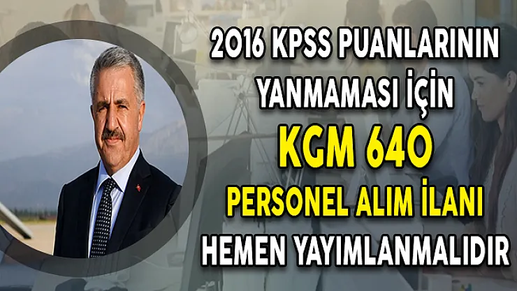 - 2016 KPSS Puanlarının Yanmaması İçin KGM 640 Kamu Personeli Alım İlanı Hemen Yayımlanmalıdır