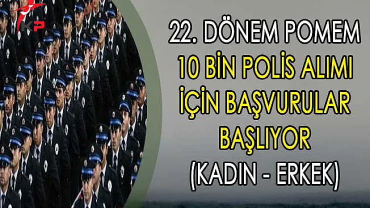 22. dönem POMEM 10 bin polis alım ilanına başvurular 12 Mart 2018 tarihinde başlıyor ve 23 Mart 2018 tarihine kadar devam edecektir. Söz konusu polis alım ilanına başvuru yapacak olan adaylar başvuru tarihleri içinde "http://www.pa.edu.tr" web adresi üzerinden e-devlet şifreleri ile başvurularını yapacaklardır.