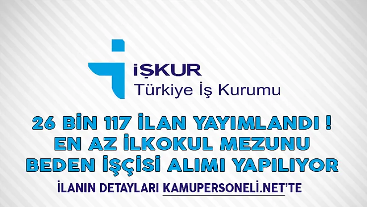 İŞKUR üzerinden yayımlanan ilanlara göre 26 bin 117 beden işçisi alımı yapılacağı duyuruldu.