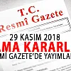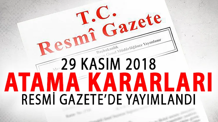 29 Kasım 2018 Tarihli Atama Kararları Resmi Gazete'de Yayımlandı!