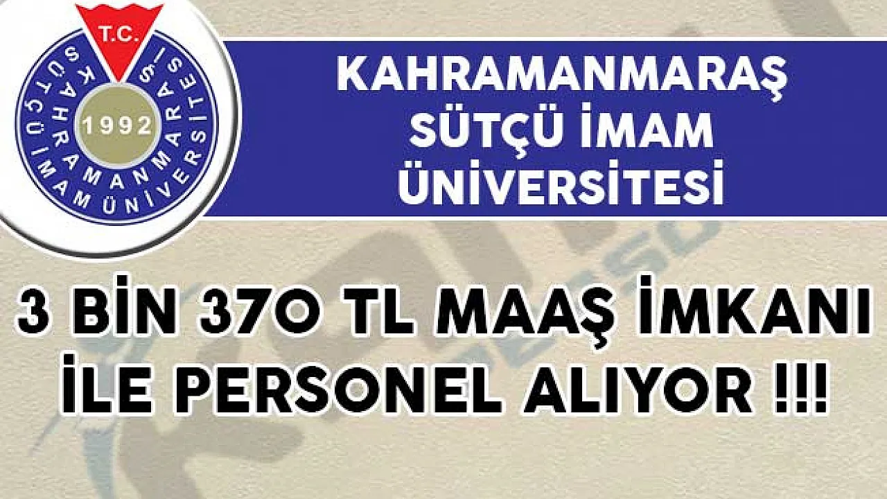 Adaylar başvurularını www.ksu.edu.tr web adresinde bulunan İş Talep Formunun tam eksiksiz doldurarak istenen belgelerle birlikte ilanın gazete yayınlandığı günü izleyen 15 gün içinde Avşar Yerleşkesinde bulunan Kahramanmaraş Sütçü İmam Üniversitesi Rektörlüğü Personel Daire Başkanlığına şahsen başvurmaları gerekmektedir.