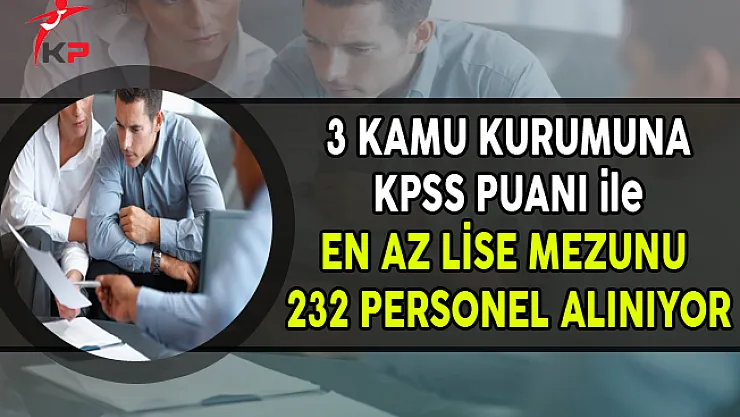 3 Kurum KPSS Puanı ile En Az Lise Mezunu 232 Personel Alımı Yapıyor