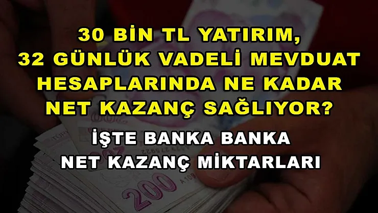 - 30 bin TL yatırım, 32 günlük vadeli mevduat hesaplarında ne kadar net kazanç sağlıyor? İşte banka banka net kazanç miktarları
