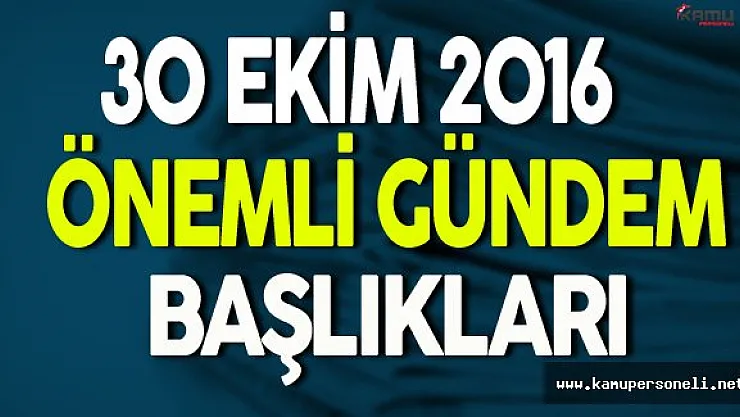 30 Ekim 2016 Pazar Önemli Gündem Başlıkları