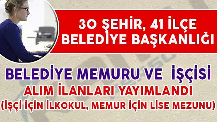 - 31 İl 40 İlçe Belediye Başkanlığı Belediye Memuru ve İşçisi Alım İlanı Yayımladı