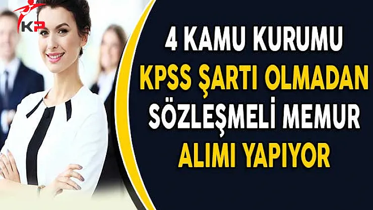 4 Kamu Kurumu, Devlet Personel Başkanlığı aracılığıyla yayımladıkları ilanlar ile KPSS şartı aramadan sözleşmeli memur alımı yapacaklarını duyurdular.KPSS şartı aranmayan kamu personeli alım ilanlarını siz okuyucularımızla paylaşıyoruz.