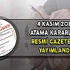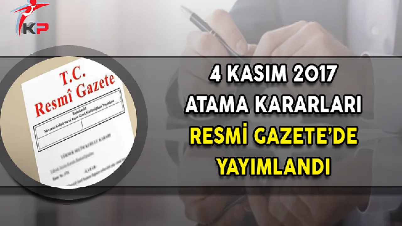 4 Kasım 2017 Atama Kararları Resmi Gazete'de Yayımlandı