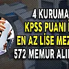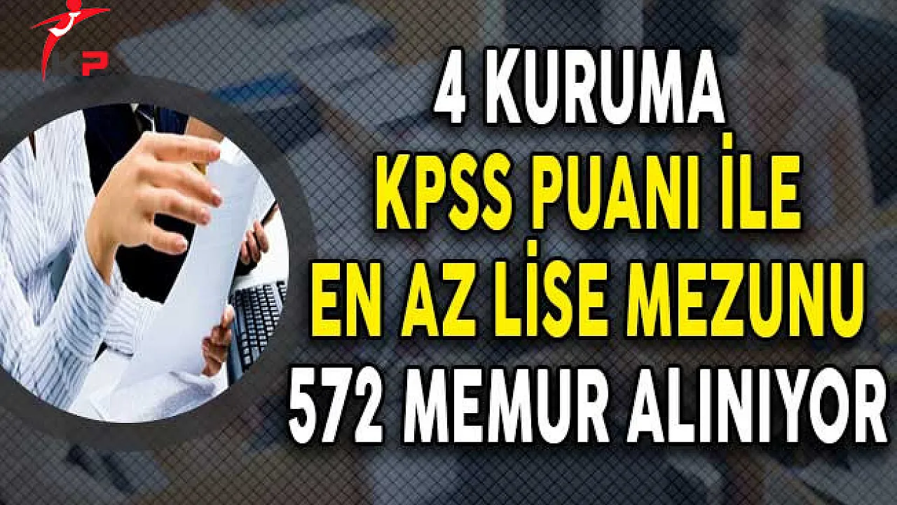 - 4 Kurum KPSS Puanı İle En Az Lise Mezunu 572 Memur Alımı Yapıyor !