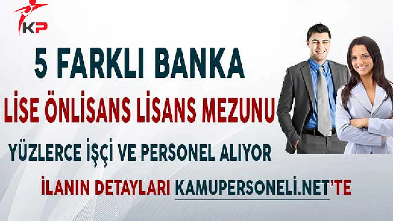 - 5 Banka Lise Önlisans Lisans Mezunu Yüzlerce Personel ve İşçi Alımı Yapıyor!
