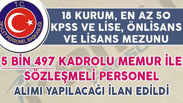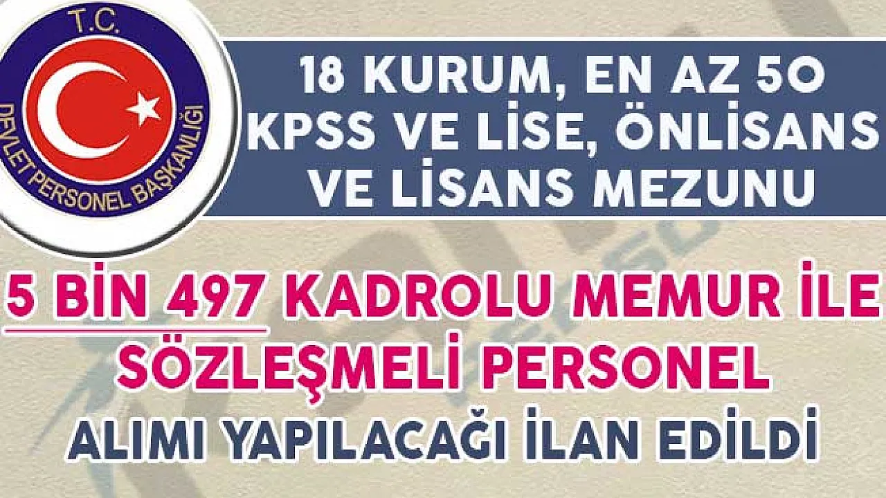 - 5 Bin 497 Kadrolu Memur ve Sözleşmeli Personel Alım İlanı DPB'de Yayımlandı