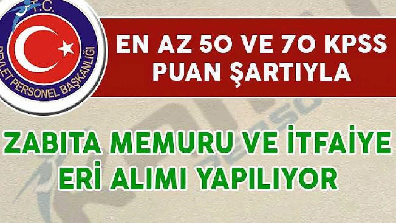 Devlet Personel Başkanlığı'nın resmi internet sayfası üzerinden yayımlanan ilanlar arasında Zabıta Memuru ve İtfaiye Eri alımı için ilanlar bulunuyor.İki farklı belediye başkanlığı tarafından yayımlanan alım ilanlarına ise 50 ve 70 KPSS puanları ile başvu
