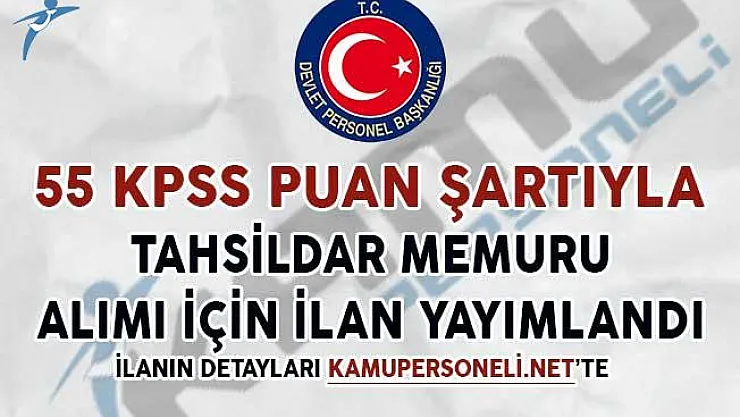 - 55 KPSS Puan Şartıyla Tahsildar Memuru Alım İlanı Yayımlandı