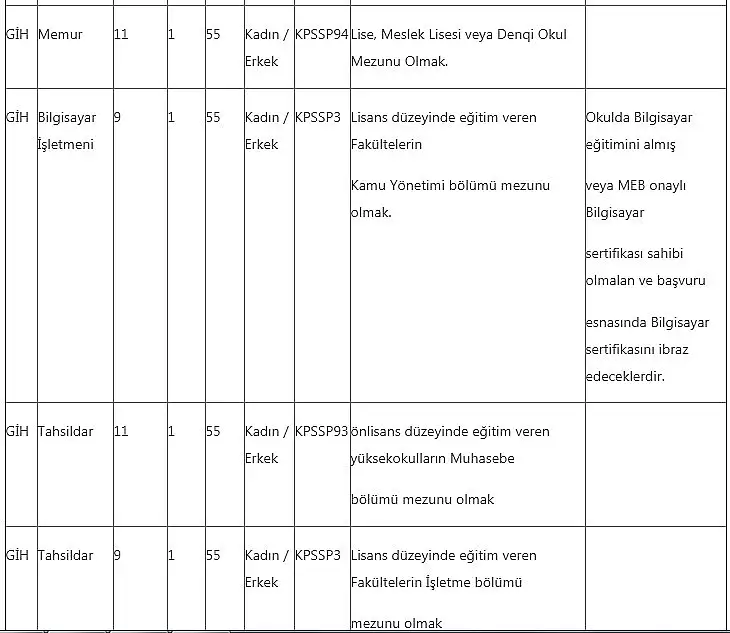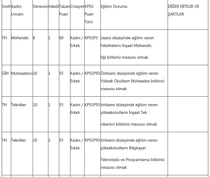 Söz konusu alım ilanında ilgili KPSS puan türünden en az 55 ve 60 almış adayların başvuru yapabilecekleri pozisyonlar bulunuyor. İlanlara ilişkin ayrıntıları siz okuyucularımıza aşağıda aktarıyoruz.