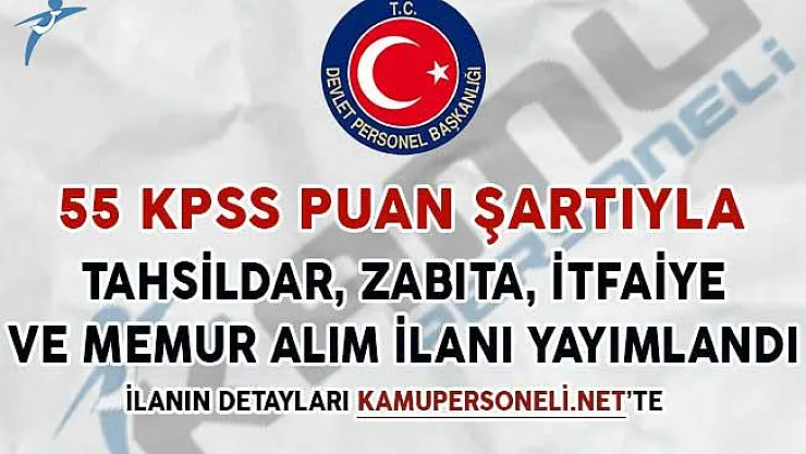 - 55 KPSS Puanıyla Tahsildar, Zabıta, İtfaiye ve Memur Alım İlanı Yayımlandı