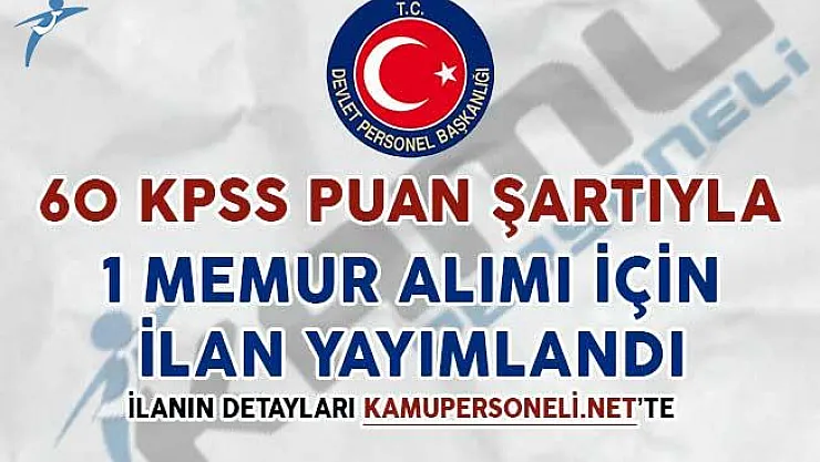 - 60 KPSS Puan Şartıyla 1 Memur Alım İlanı Yayımlandı
