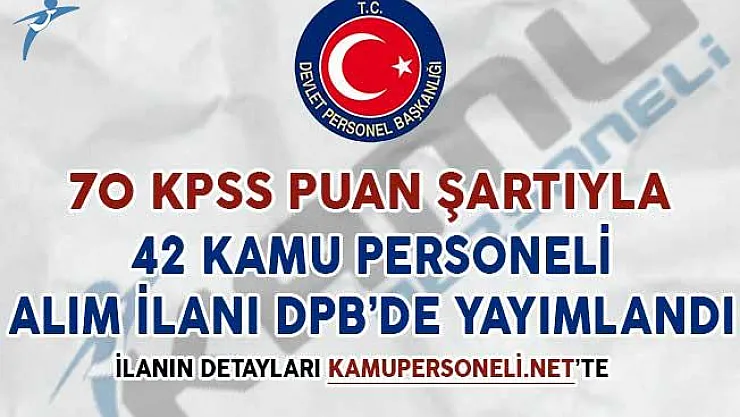 - 70 KPSS Puanıyla 42 Kamu Personeli Alım İlanı DPB'de Yayımlandı