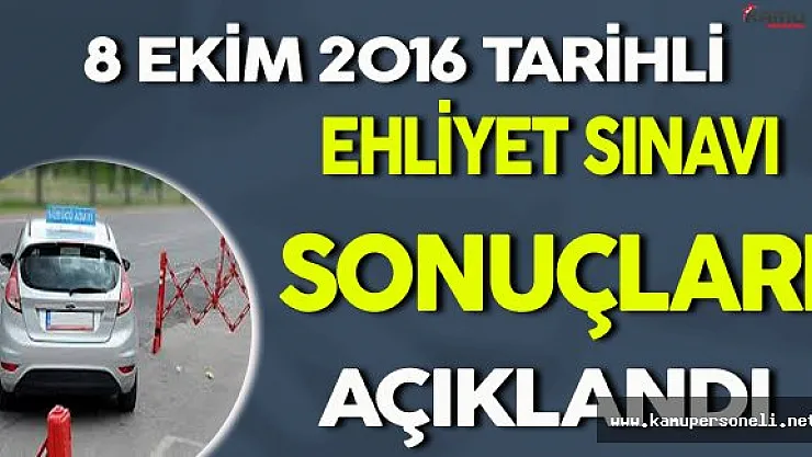 8 Ekim 2016 Tarihli Ehliyet Sınav Sonuçları Açıklandı !