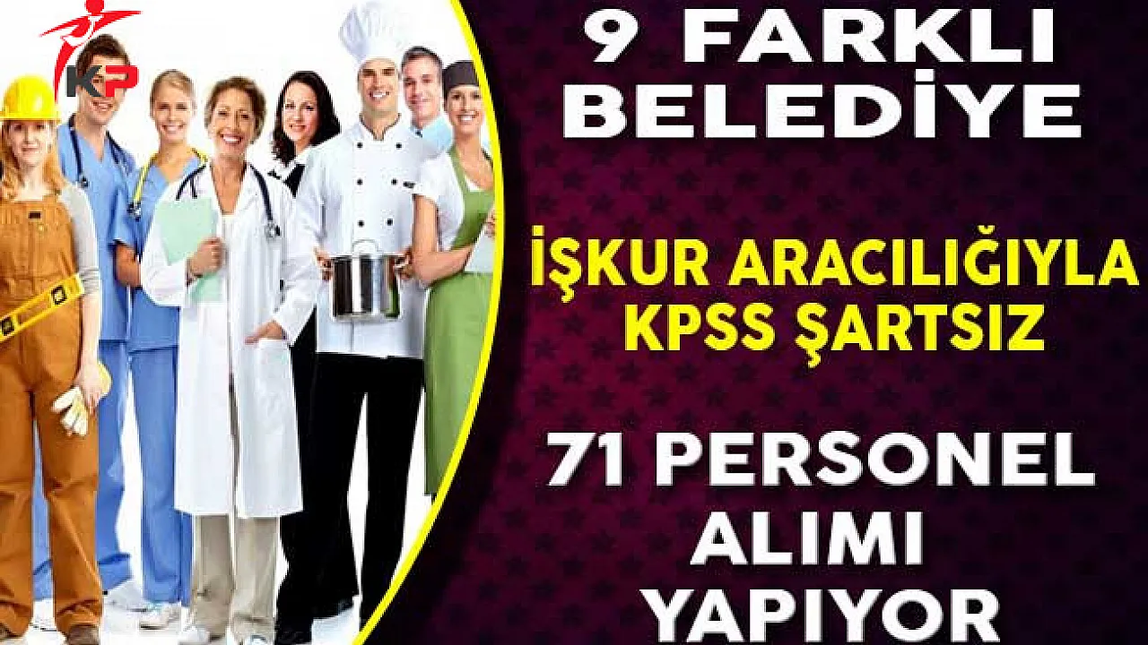 - 9 Farklı Belediye İşkur Aracılığıyla KPSS Şartsız 71 Personel Alımı Yapıyor