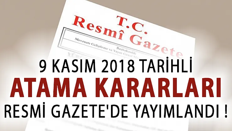 9 Kasım 2018 Tarihli Atama Kararları Resmi Gazete'de Yayımlandı!