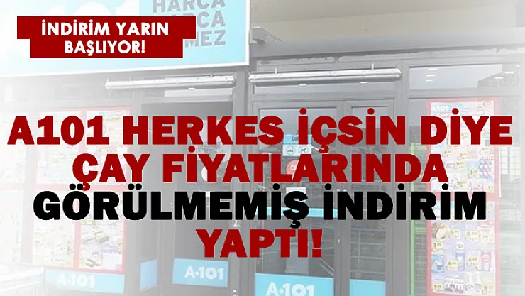 Perşembe günleri çok sayıda ürünü indirimli bir şekilde satışa sunan A101 hafta sonundan başlayan indirimi müşterilerine duyurdu. Market, yaptığı açıklamasında herkes içsin diye çay fiyatlarında görülmemiş indirim yaptı.
