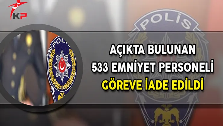 Emniyet Genel Müdürlüğünden göreve iade açıklaması geldi. Buna göre açıkta bulunan 533 emniyet personeli göreve iade edildi.