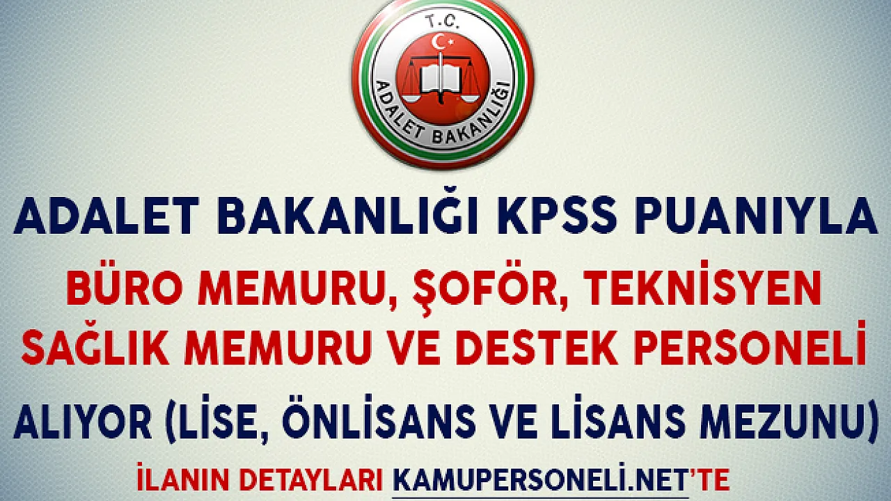 - Adalet Bakanlığı KPSS Puanıyla Büro Memuru Şoför, Destek Personeli, Sağlık Memuru ve Teknisyen Alıyor