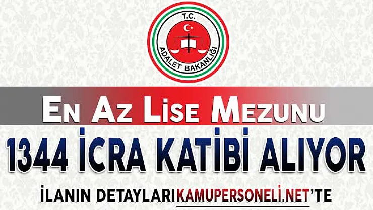 Bunun ardından Adalet Bakanlığından 1344 icra katibi alımı için ilan yayımlandı. Yayımlanan ilana en az lise mezunu adaylar başvuru yapabilecektir. İlanın detayları ise şöyle: