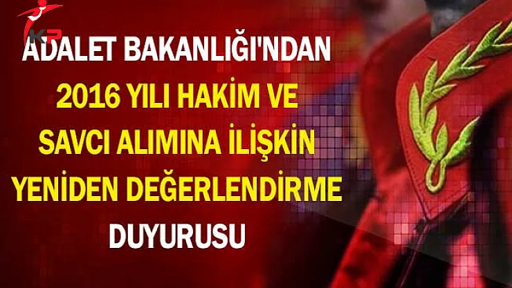 - Adalet Bakanlığı'ndan 2016 Yılı Hakim ve Savcı Alımına İlişkin Yeniden Değerlendirme Duyurusu