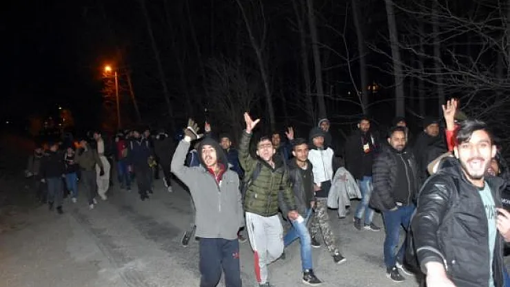 Edirne'ye gelen aralarında kadın ve çocukların da bulunduğu binlerce göçmen, haberin duyulmasının ardından gece yarısı Yunanistan'a geçmek üzere sınıra doğru yürüyüşe geçti.