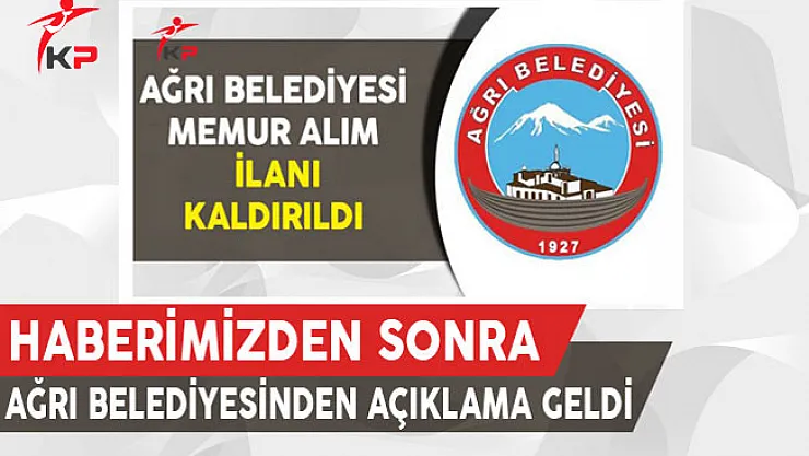 Kamupersoneli.net olarak 29 Mayıs 2017 tarihinde yazdığımız 'Ağrı Belediyesi Memur Alım İlanını Kaldırdı' başlıklı haberimizde ilanın kaldırıldığını ve adayların mağduriyetlerinin giderilmesi için Belediyeden açıklama beklendiğini dile getirmiştik. Haberimizin ardından Ağrı Belediye Başkanlğı resmi sitesinde memur alımına ilişkin açıklama yaptı.