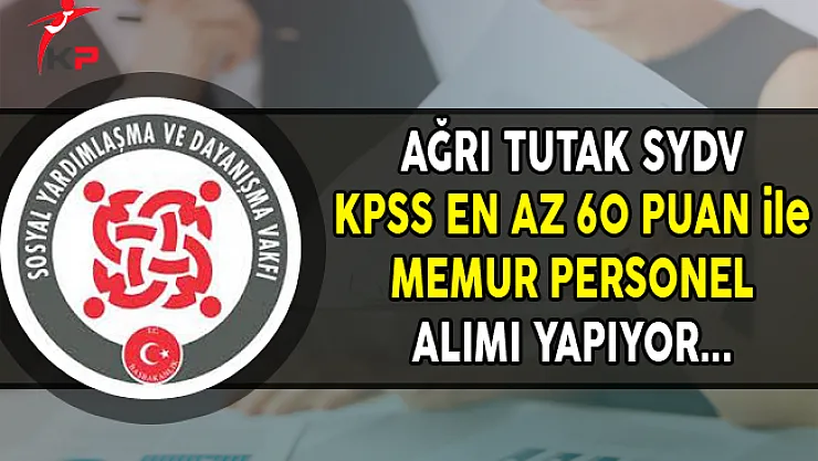 Ağrı Tutak Sosyal Yardımlaşma ve Dayanışma Vakfı (SYDV), bir personel alım ilanı yayımlayarak KPSS en az 60 puan ile Sosyal Yardım ve İnceleme Görevlisi (1) pozisyonunda personel alımı yapacağını duyurdu.