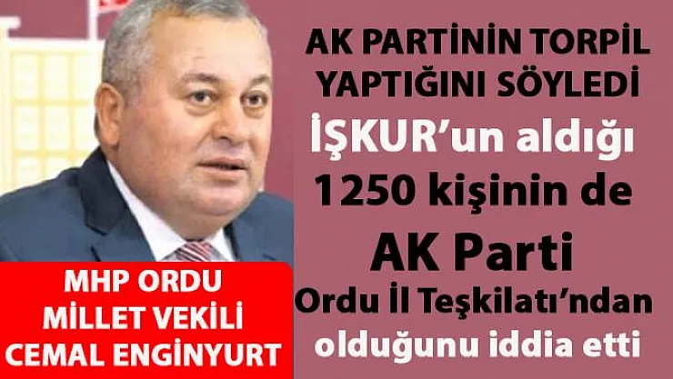 MHP’nin Ordu vekili Enginyurt, İŞKUR’un aldığı 1250 kişinin de AK Parti Ordu İl Teşkilatı’ndan olduğunu yazdı.