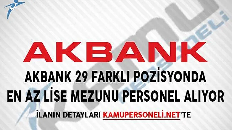 - Akbank 29 Farklı Pozisyonda En Az Lise Mezunu Personel Alıyor!