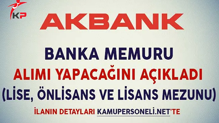 - Akbank Banka Memuru Alımı Yapıyor (Lise, Önlisans ve Lisans Mezunu)