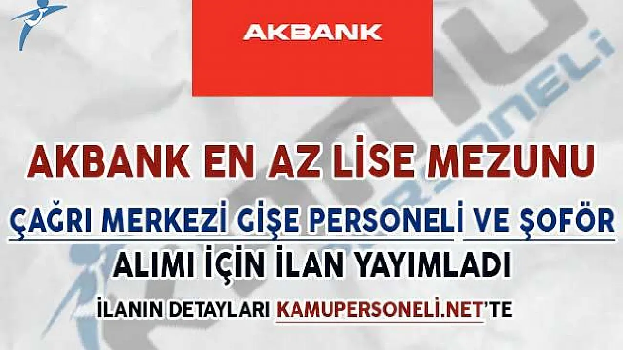 - Akbank En Az Lise Mezunu Çağrı Merkezi, Gişe Yetkilisi ve Şoför Alım İlanı Yayımladı