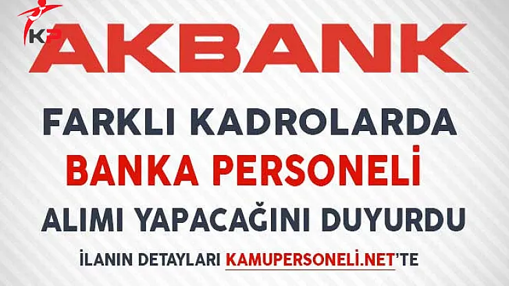 Akbank, yayımladığı bir ilan ile Türkiye genelinde faaliyet göstermekte olan şubelerinde görevlendirmek üzere çok sayıda personel alımı yapacağını duyurdu.Akbank tarafından yayımlanan personel alım ilanlarında yer alan boş pozisyonlar, adaylarda aranan ge