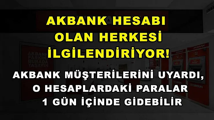 - Akbank hesabı olan herkesi ilgilendiriyor! Akbank müşterilerini uyardı, o hesaplardaki paralar 1 gün içinde gidebilir