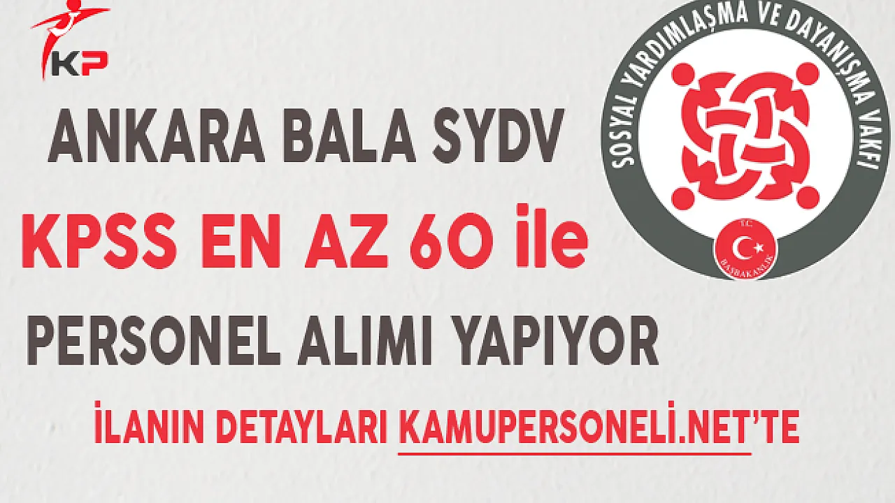 Ankara Bala Sosyal Yardımlaşma ve Dayanışma Vakfı (SYDV), personel alım ilanına başvurular