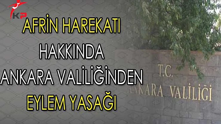 Ankara Valiliğinin resmi web adresi üzerinden bir duyuru yayımlandı. Yayımlanan duyuruda Afrin Zeytindalı Harekatına ilişkin eylem yasağı getirildiği ifade edildi.