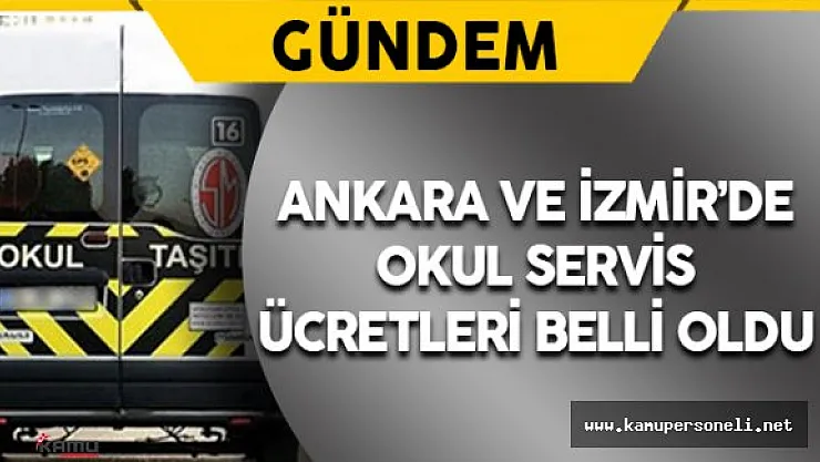 Ankara ve İzmir'de 2016-2017 eğitim öğretim yılı okul servislerinin zamlı ücretleri belli oldu.İstanbul'da ise yeni ücretler, İstanbul Büyükşehir Belediyesi Ulaşım Koordinasyon Merkezinin (UKOME) onayının ardından belirlenecek.