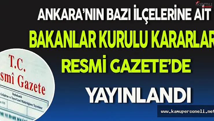 - Ankara'nın Bazı İlçelerine İlişkin Bakanlar Kurulu Kararları Resmi Gazete'de Yayınlandı