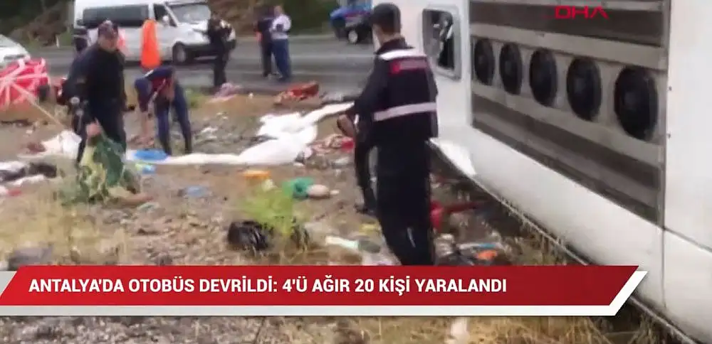 Antalya'da son dakika olarak bildirilen trafik kazasında, bir yolcu otobüsünün devrildiği bilgisi geldi! Akseki-Manavgat kara yolunda meydana gelen trafik kazasında, yolcu otobüsünde bulunan 20 kişi yaralandı.Kaygan yolda direksiyon hakimiyetini kaybeden